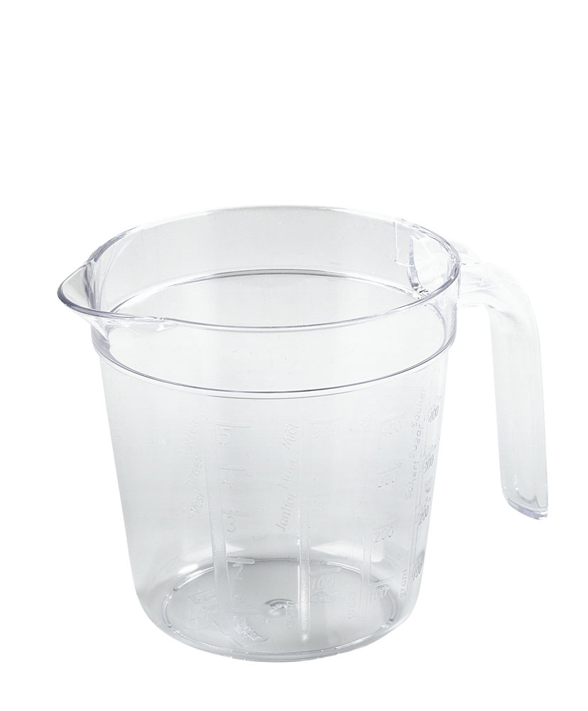 Slitesterkt halvlitermål gradert i desiliter for øvelser med volum. Målet har også inndelinger i gram for mel, ris og sukker.