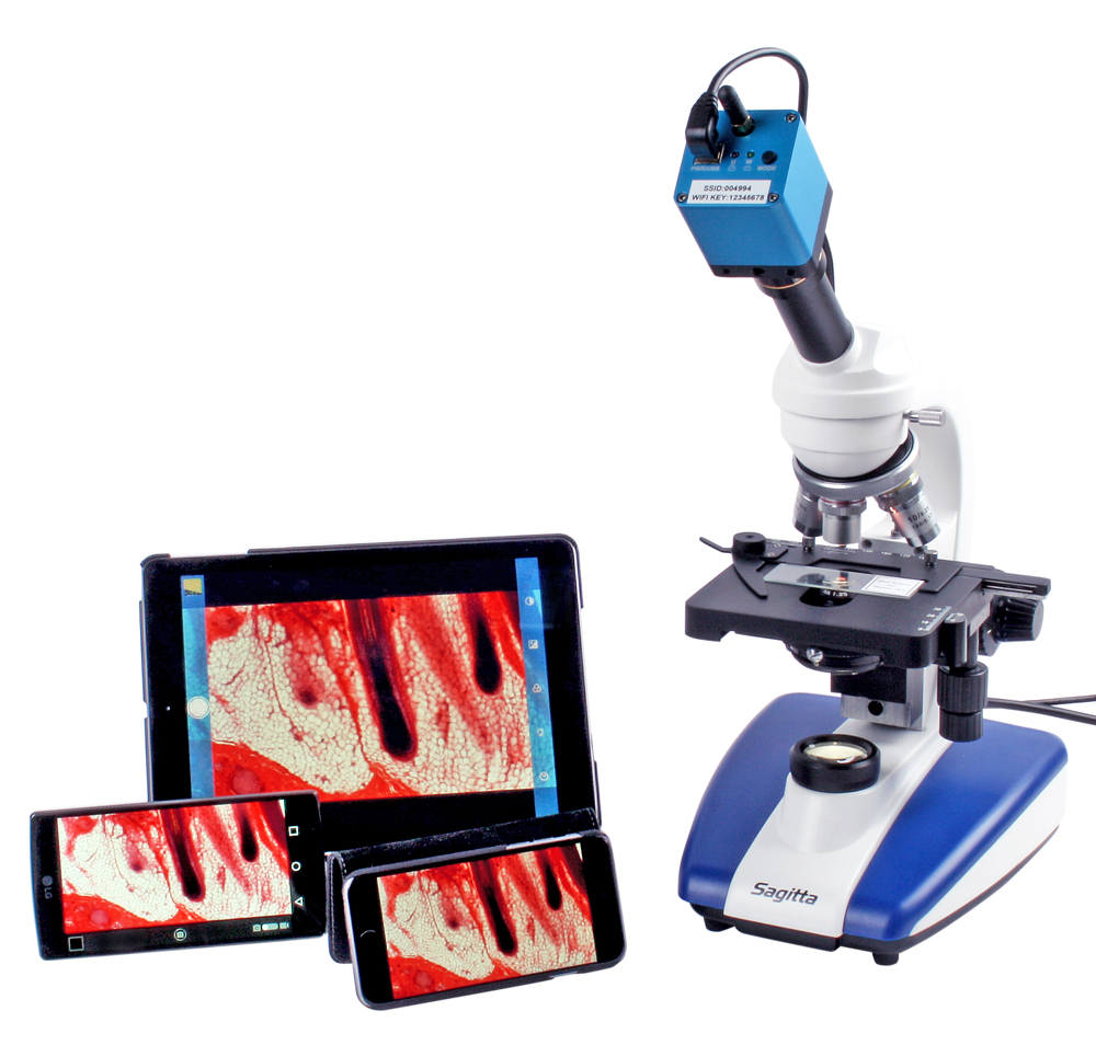 Se mikroskopbildet “live” på nettbrettet/telefonen. Du kan dessuten sende bildene til datamaskinen via USB-kabelen.